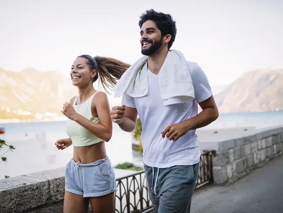 - Regelmäßig trainieren, damit die Bewegung wieder zur Routine wird: Belohnen Sie sich nach der ersten Woche Durchhalten und nach dem ersten Monat. Danach bekommen Sie auch vom Körper Signale, dass er sich an die sportliche Routine gewöhnt hat.